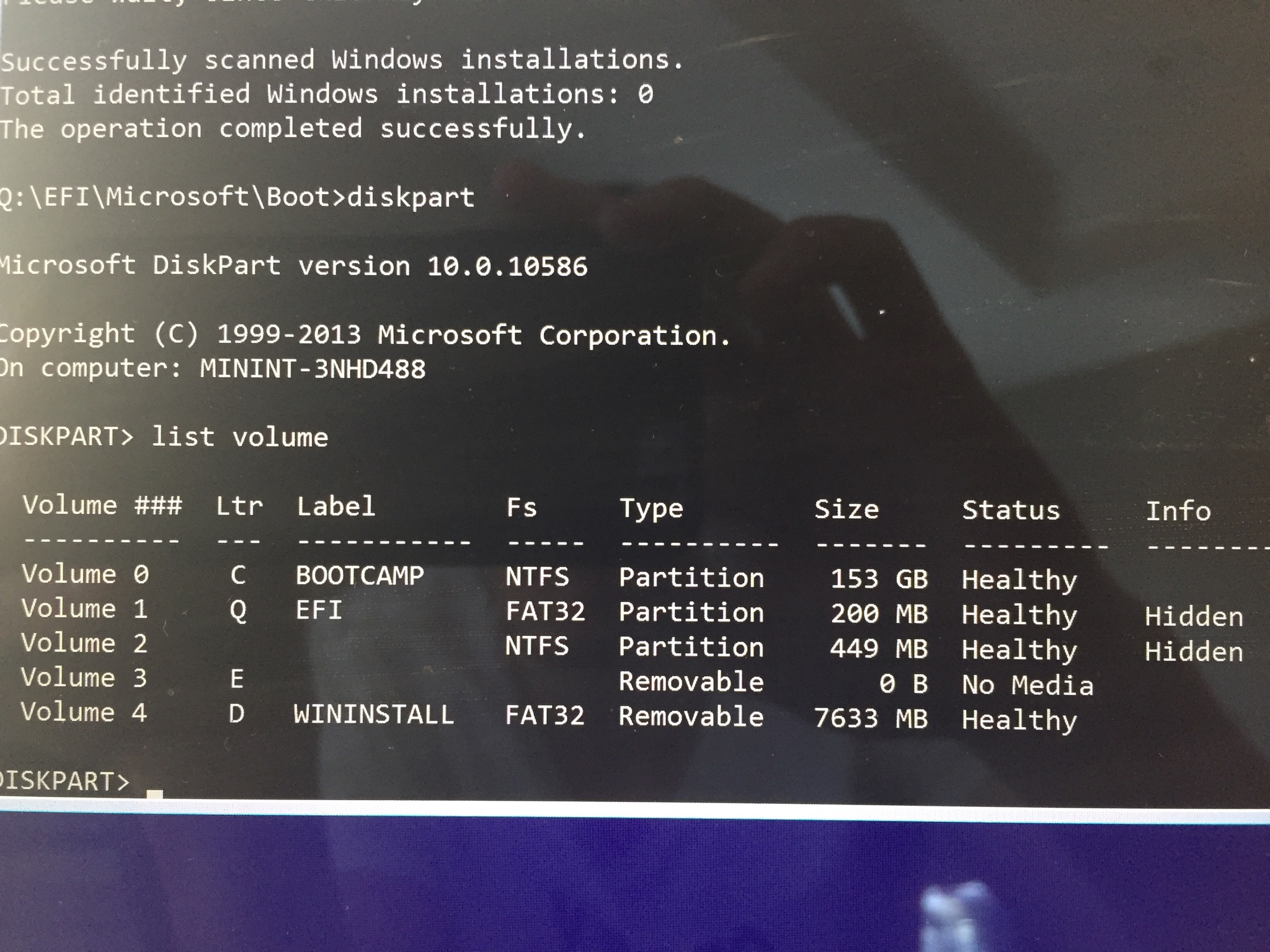 However, when booting from the SD EFI icon in bootcamp, I get a message stating that it looks like I have begun an upgrade to Windows, would I like to continue the upgrade by removing the installation media, or instead perform a clean installation of Windows 10. If I remove the media, I get returned to the original blue error screen. If I attempt a clean install, I go through a few windows asking for language, input etc and then arrive at a window which asks where I want to install Windows 10.