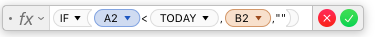 C2: IF(B<TODAY(),LEFT(A,4),IF(B=TODAY(),A,IF(B<TODAY()+7,RIGHT(A,4),"OK")))