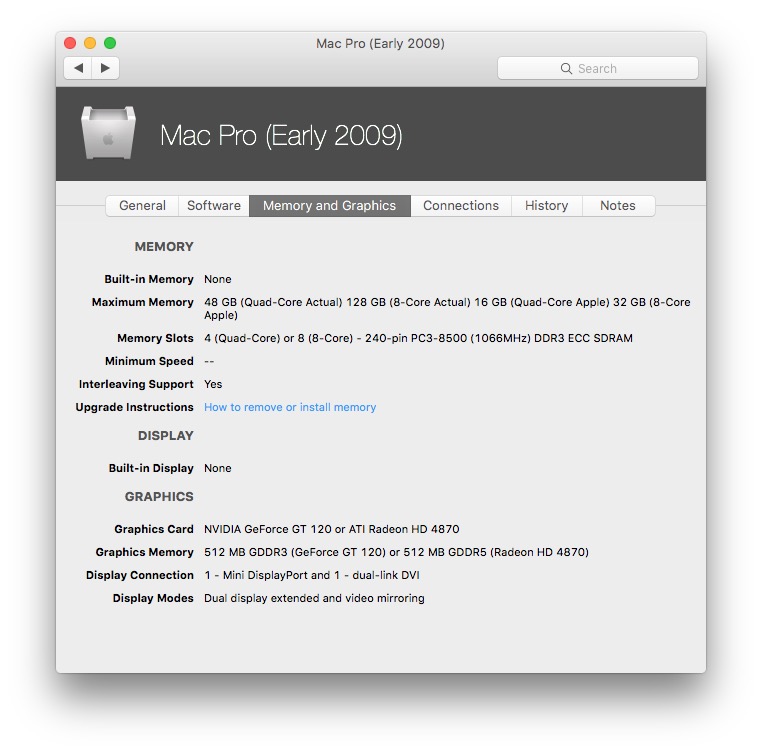 What is the maximum memory limit in Mac OS X Yosemite and El Capitan? In Lion the limit was 96GB and in Mavericks it was raised to 128GB. I'm wondering if the limit was raised again in Yosemite or El Capitan but I can't find anything conclusive. I'm thinking about retrofiting a Mac Pro 2009 with X5690s, and I noticed that the X5690 is capable of supporting 288GB of memory. The Mac Pro has 8 slots, so I could get 8x 32GB modules for 256GB. Intel has verified that 32GB modules are compatible with the platform, so I don't see any obvious technical reasons why this wouldn't work. The only snag is what is the maximum RAM that El Capitan can utilize?