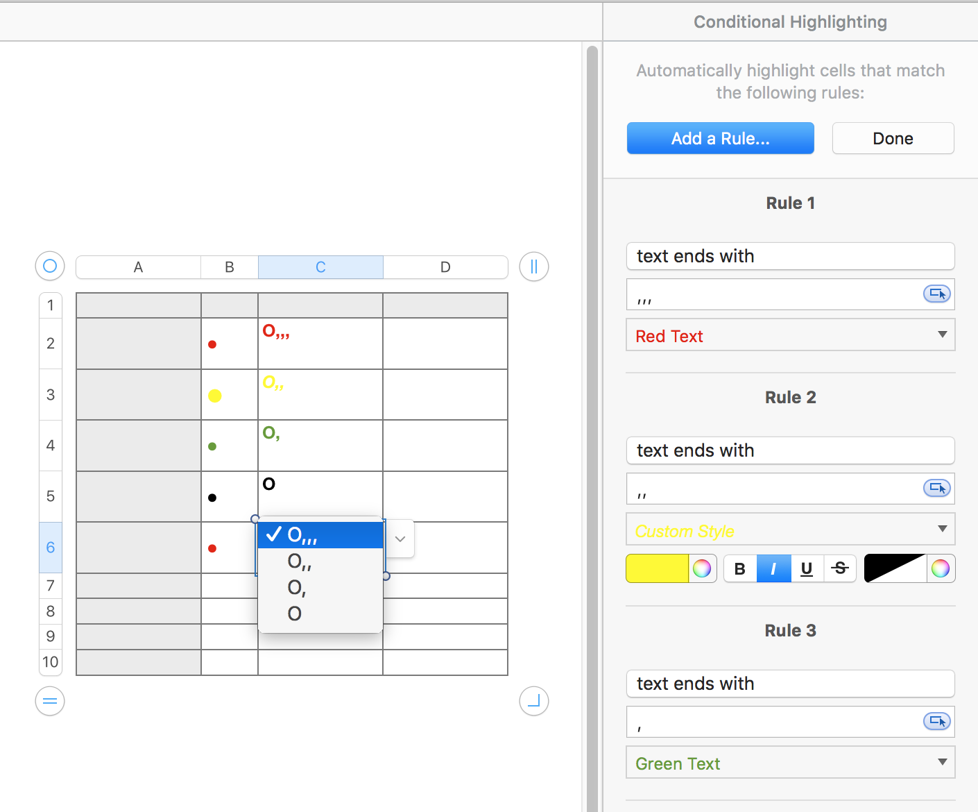 Go to the pop-up Conditional Highlighting menu near the bottom of the panel.