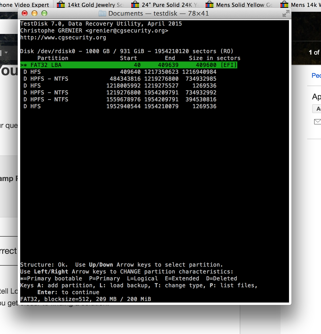 gpt show: /dev/disk0: Pri GPT at sector 1