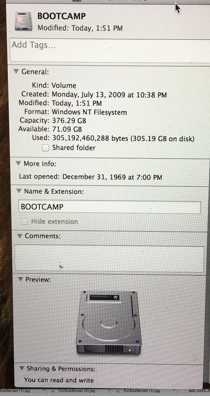 4: Microsoft Basic Data BOOTCAMP 376.3 GB disk0s4