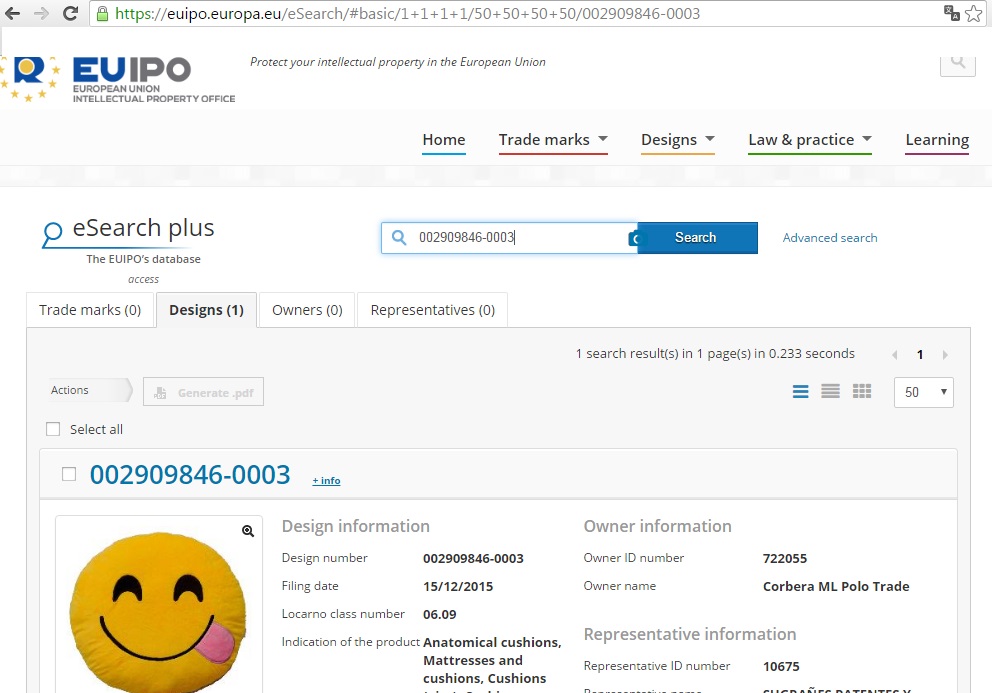 Hello, i have a electronics shop and since some time i am selling 3-4 emoji pillows per week. Today I have recieved a letter from a company called Polo Trade (spain) that says that have patented all Apple emojis. You can see in European Union Intellectual Property web that have patented all designs of different emojis. This company threatened to denounce me if I dont stop to selling these pillow emojis.