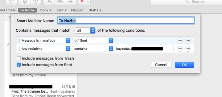 Just to be clear, when viewing an Inbox list, the inbox lists always highlight FROM WHOM the email is coming from by default in the sort listing. The Sent box always highlights TO WHOM the email is going to by default. For a Smart mailbox, it always highlights FROM WHOM the email is coming from, even when filtering Sent messages only. If I am filtering only SENT messages, all the emails in the listing are highlighted as coming from me, of course. This is not a useful way to view my filtered Sent messages. Can this be changed so the Smart box listing highlights TO WHOM the message is being sent?