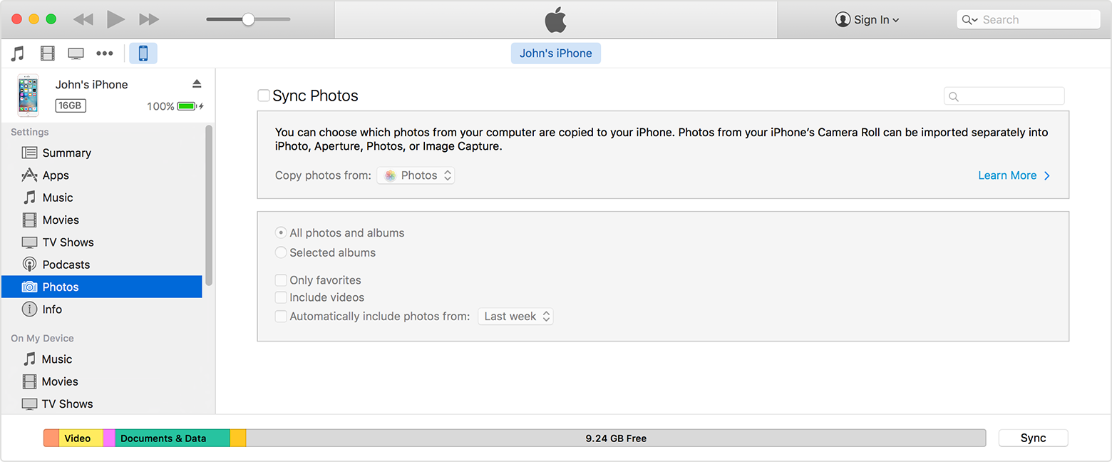 If you choose not to turn on iCloud Photo Library, you can sync your photos and videos manually in iTunes.