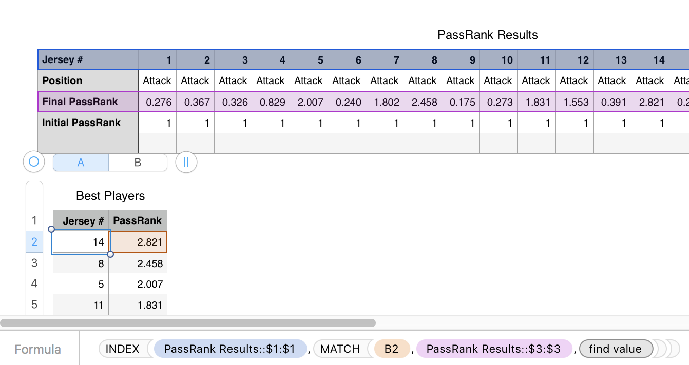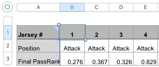The interesting part is if I change the B2 value to Position/Jersey it works it just seems like it doesn't want to accept the PassRank value. Below is an image of the Reference table: