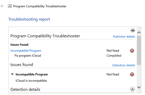I have uninstalled and re-installed the iCloud app three times now, and re-booted each time.