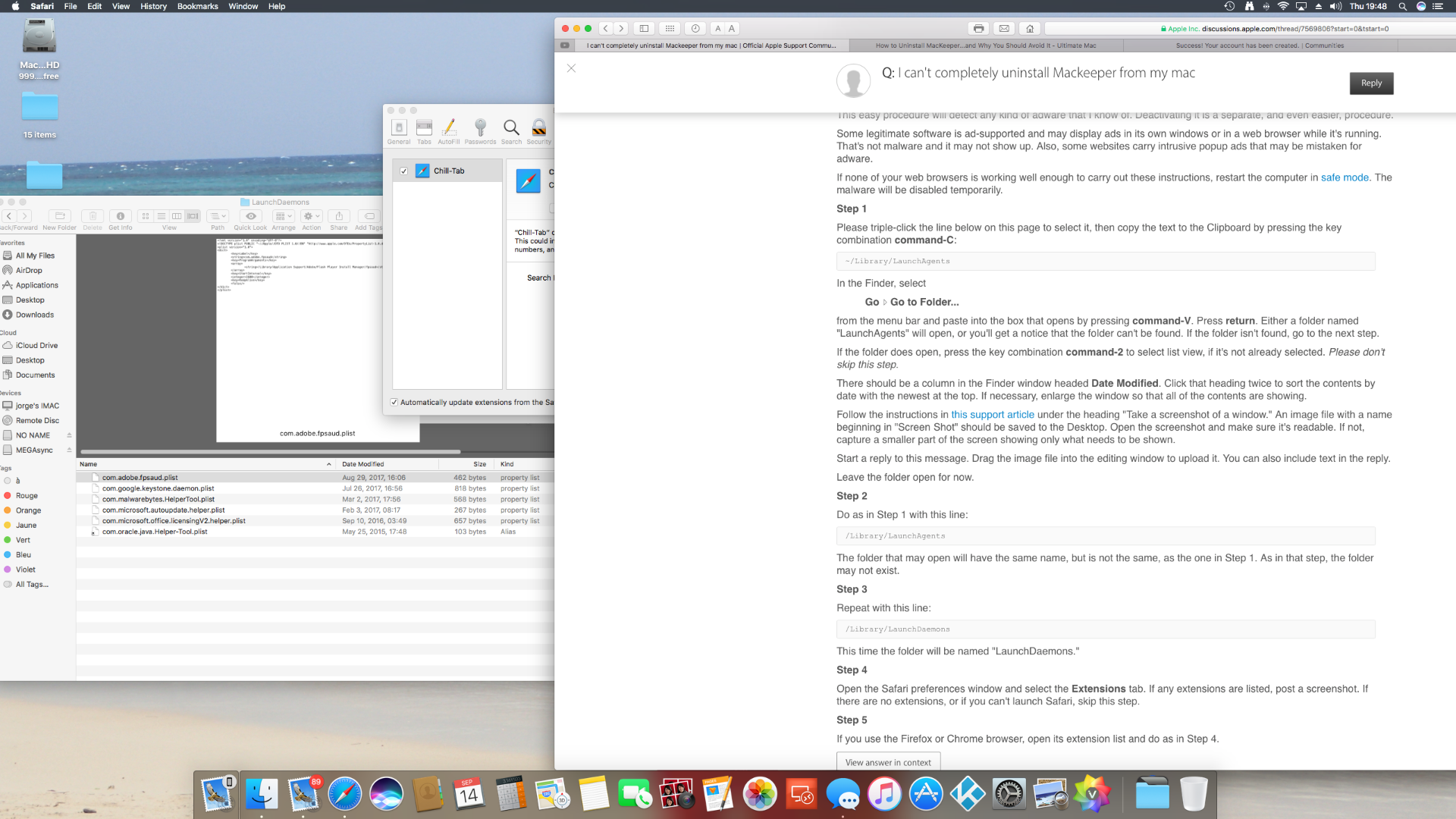 I have tried everything you suggested to clean out my computer from MacKeeper but it keeps coming back the virus