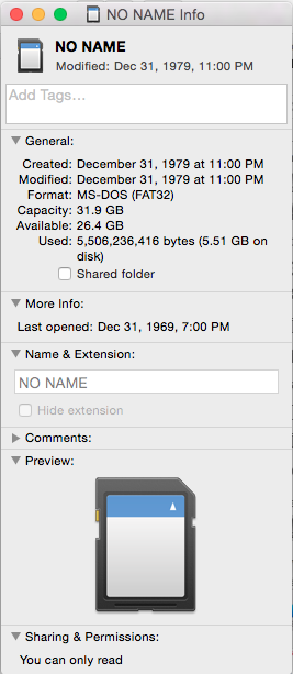 The example illustrated below is a 32GB microSD card used in my Canon camera with an SD-size adapter.