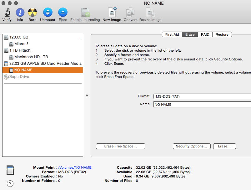 As you can see, both cards are MS-DOS (FAT32) format, and total size of each is 32GB.