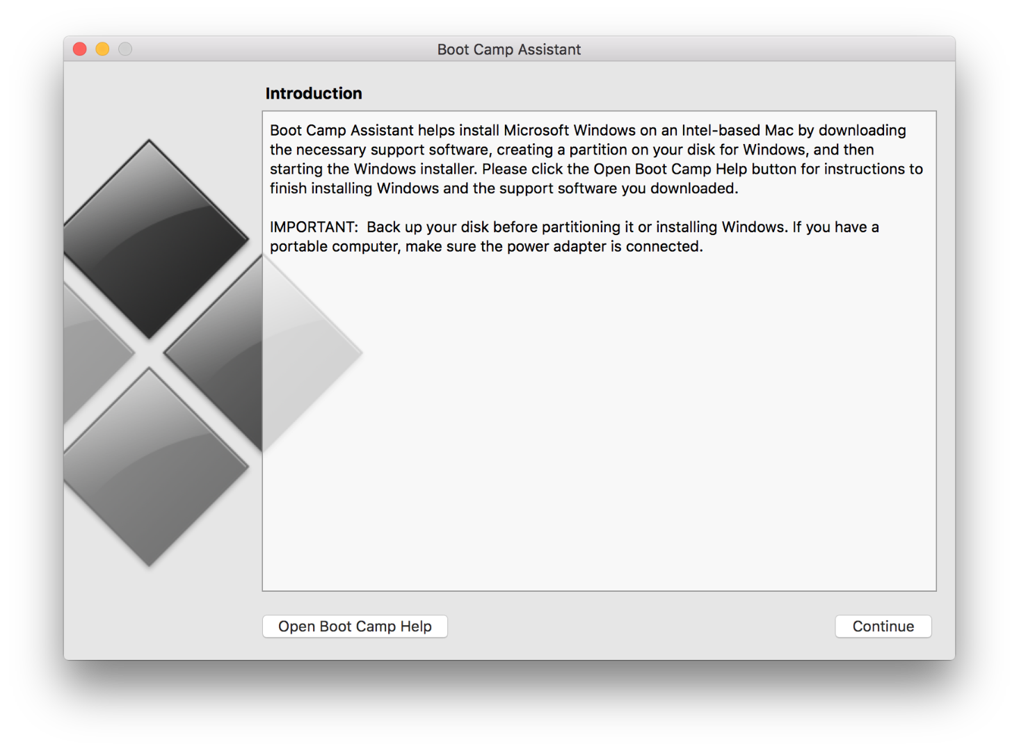 My problem is that whenever I open Boot Camp Assistant version 6 (v6) on the OS X side, it only shows me a simpler prompt.