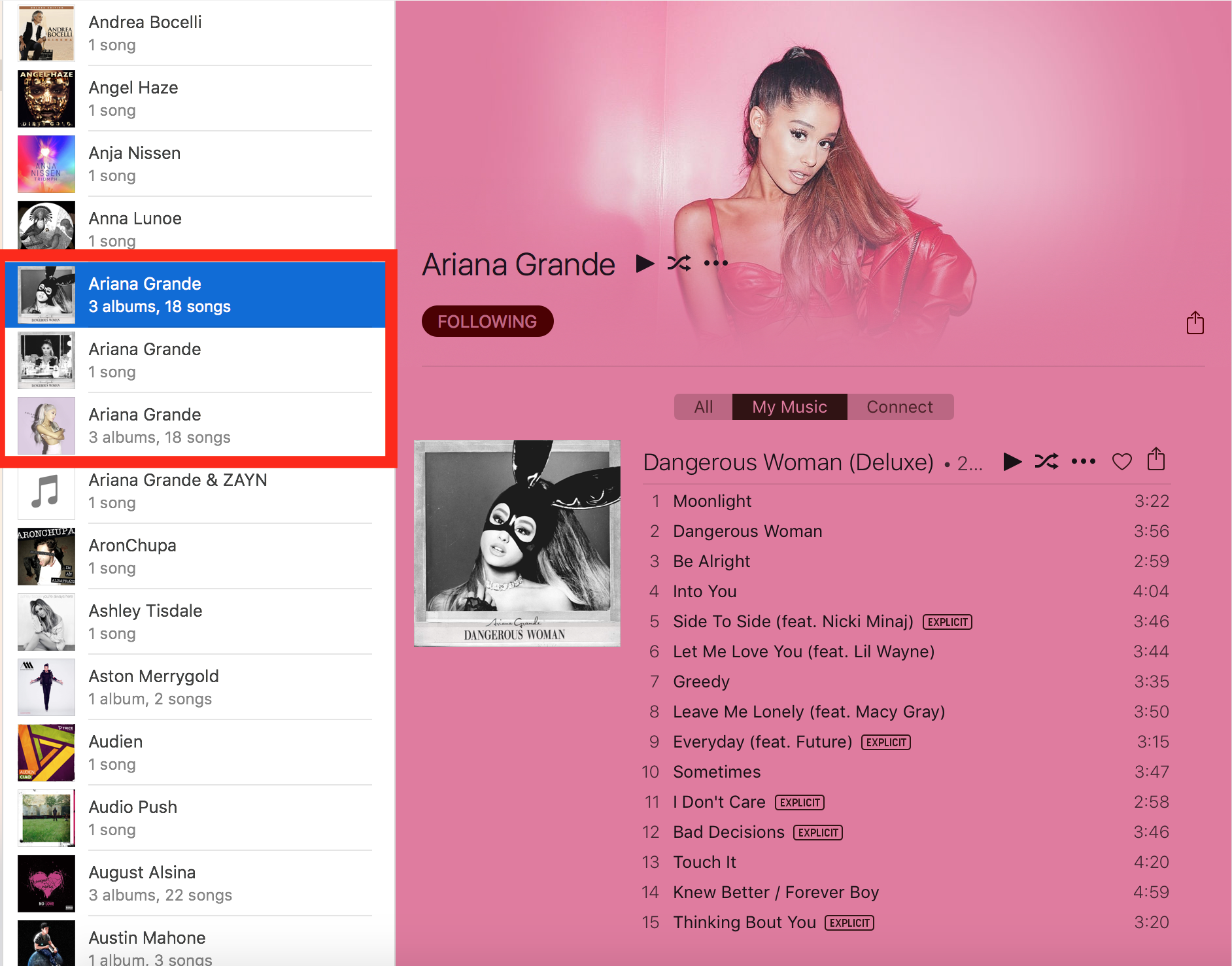 Does anyone know why there is multiple artists in iTunes? See below for example: