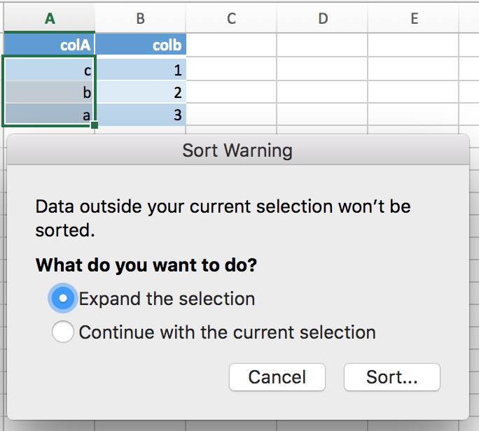 We expected a standard "sort the table on the data in the selected column' sort, but got a sort of a single column.