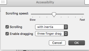 Result: With 3 fingers on highlighted file or text within a document the selection will be dragged rather than scroll of window.