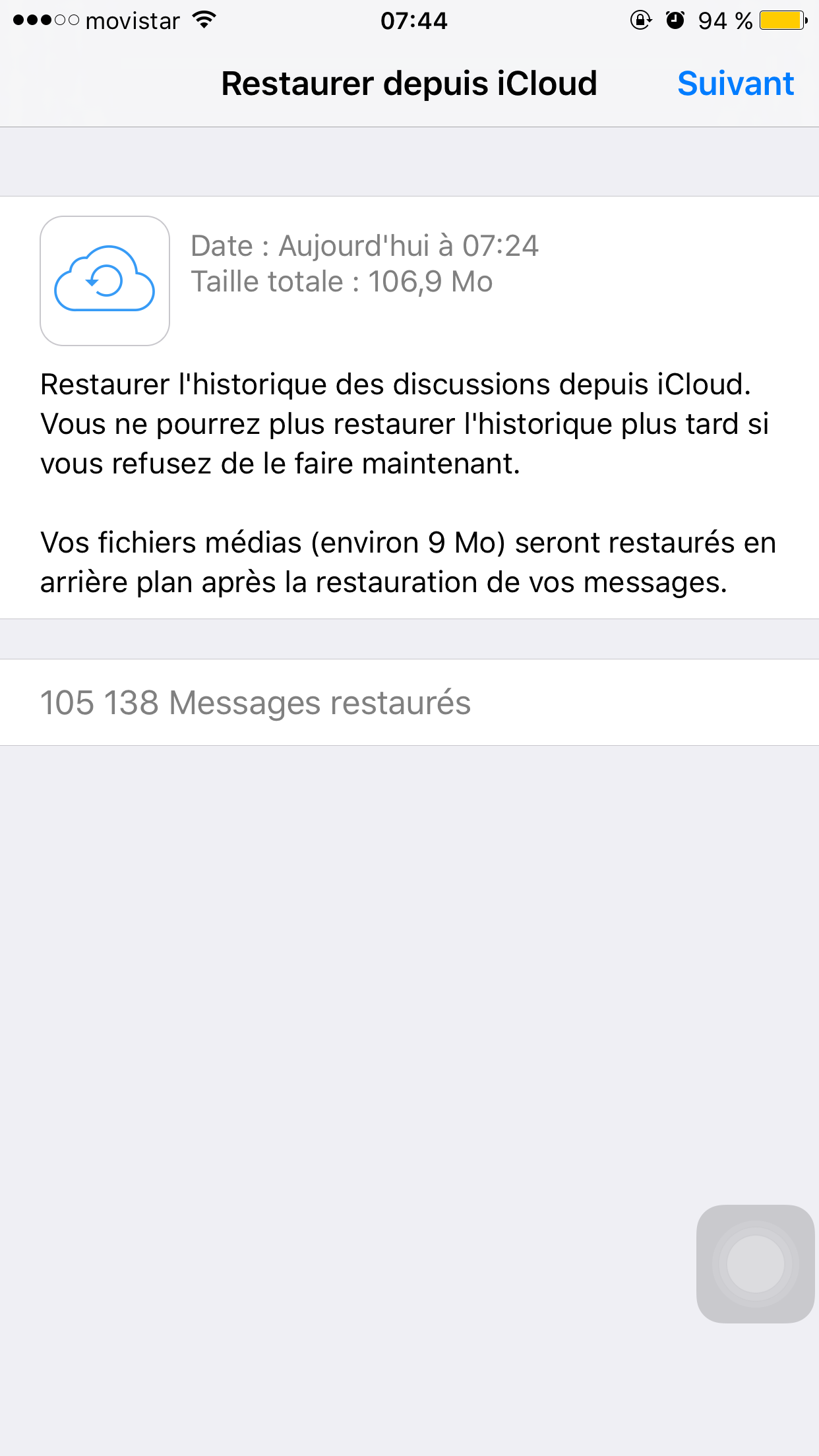 My whatsapp backup was 5GB including the media, however when it downloaded, all the photos older than a month show a "?" in place of the thumbnails.