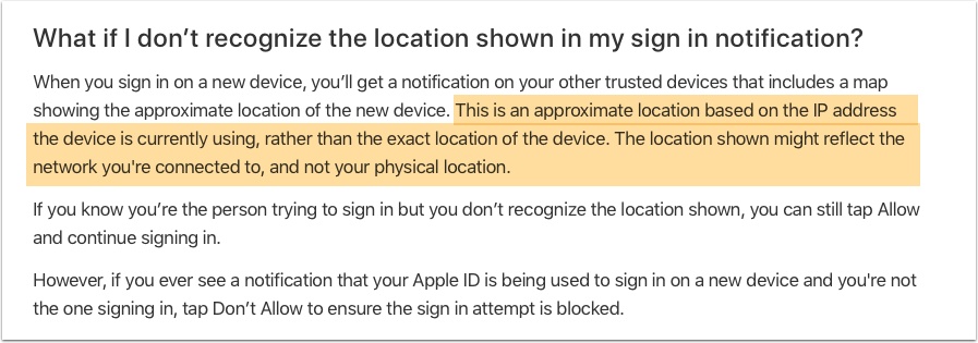 When I sign into my apple id account, I receive a notification, but it shows an incorrect location
