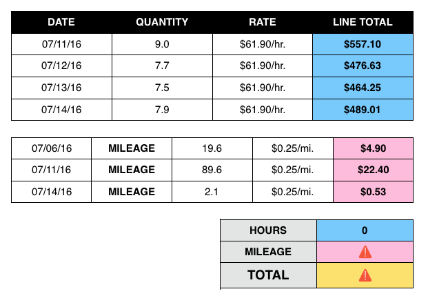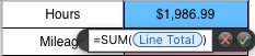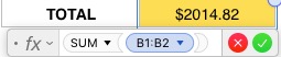 I need a little help with an invoice template. I am trying to get the upper blue column to automatically sum into the lower blue cell. The upper pink column to sum into the lower cell. Then the two lower blue and pink cells sum into the yellow cell for a final total.