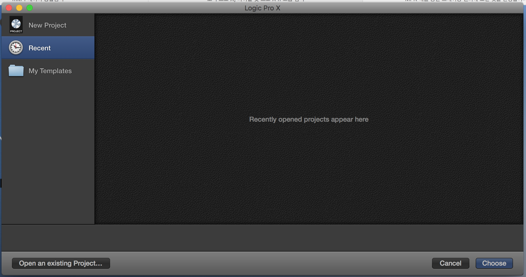 Logic pro X doesn't show recent project.