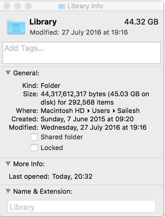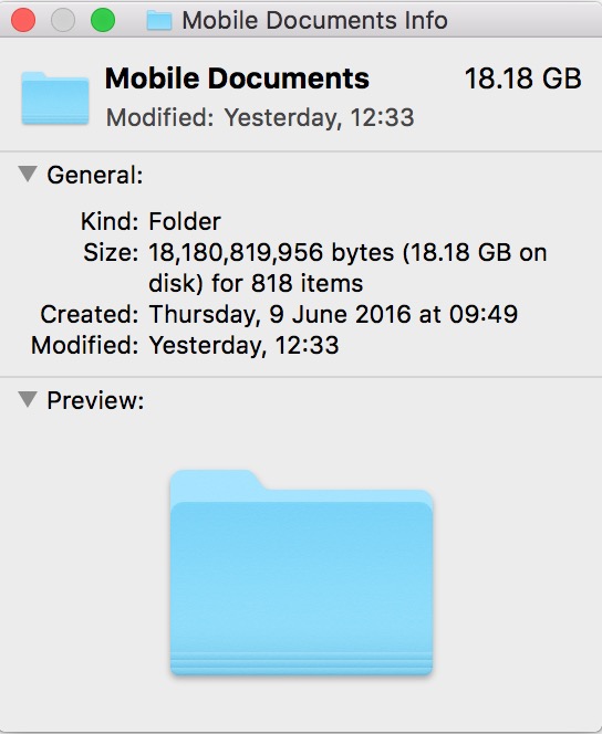 A Get Info nonetheless indicated that the folder is over 18 GB!