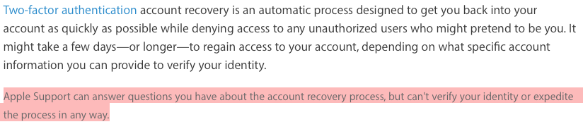 My husband cannot post here because he stupidly lost his ID password, he has an iPhone, iMac, and iPad and is constantly bombarded with popups asking for apple id, icloud password etc etc ... a total pain. Having entered into 'password recovery' (which is publicised as taking a few days) when it didn't happen he telephoned support and they said because of problems with 2 part authentication the 3 or 4 days is now taking up to 6 WEEKS. searching on-line he can find no more information about this ... he cannot get onto this site, cannot make itunes purchases, icloud doesn't sync ... a nightmare !