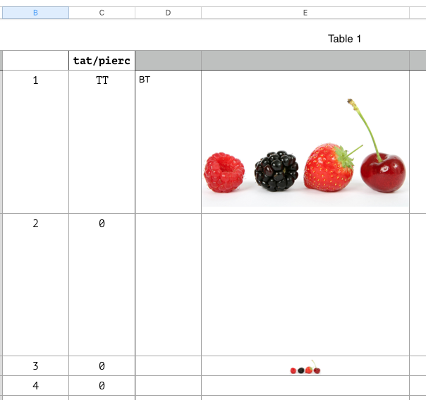 Row and Column size may be set by dragging, as I did above, or in the Table Inspector.