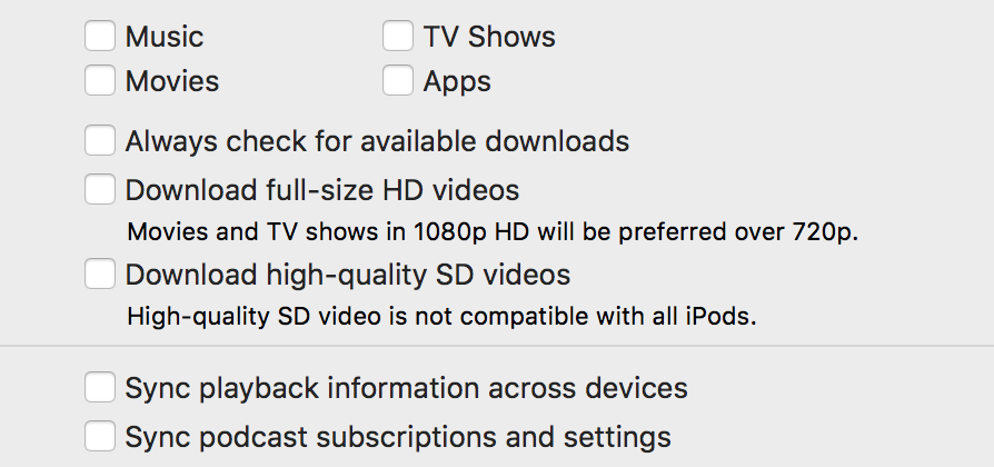 I bought 2 movies (Avengers and Moneyball, if you must know), and want to leave them in the Cloud and don't want them taking up space on my computer. I have unchecked every box on the Preferences>Store: Automatic Downloads section (see screenshot below). EVERY time I re-open iTunes it flashes "Checking for Downloads" and these 2 movies start downloading. WHY??? Everything is unchecked!! I even "hid" them in the Purchased section of my store, because I read somewhere that that mattered. I deleted the temporary files that keep downloading, including the plist. That seems to stop it when I open iTunes, but when I sync my iPhone, it checks for downloads again and the movies start downloading. Nothing truly works! HELP!