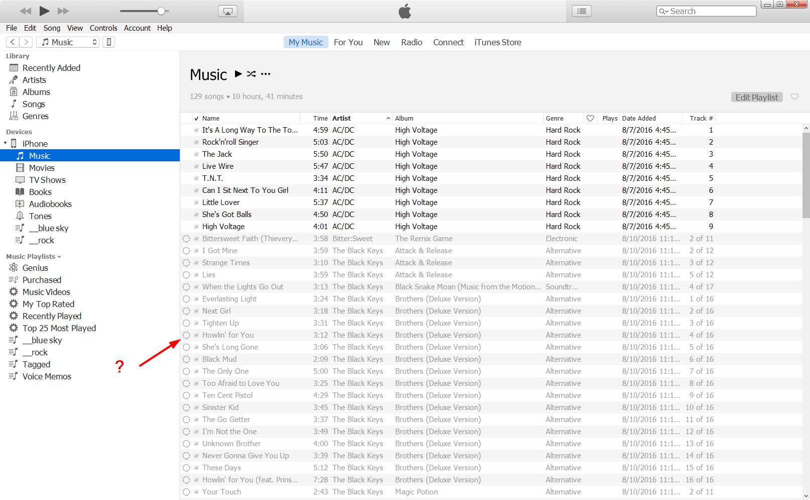 When I plugged my iPhone into my computer and fired up iTunes, i noticed some strange entries in the Music list. They appeared "greyed out" with circles (on the left side). See attached screen capture. As best I can tell, these entries correspond to purchases I made from the iTune store. But not all music purchases. Since I still have the original purchased music files on my computer, I can see the grayed out list on my iPhone is far from a complete list of all my music purchases.