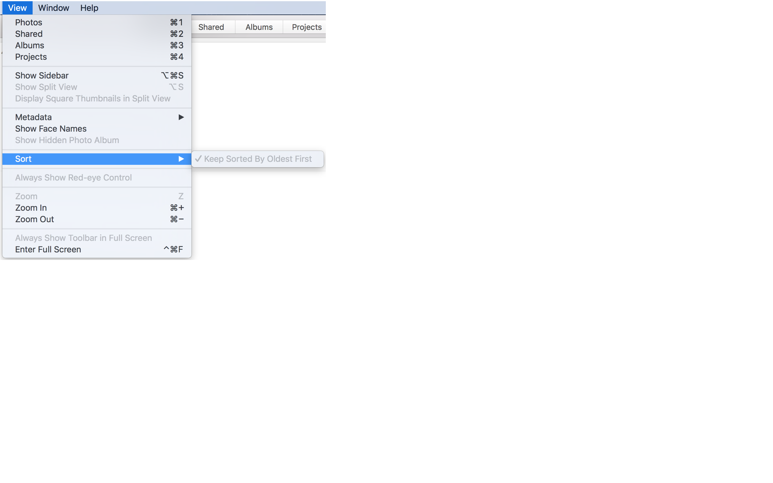 I've just organised my photos within Photos on my Mac. However I seem unable to change the order that they are currently in, which is oldest to newest, whereas I want to change the order to newest to oldest.