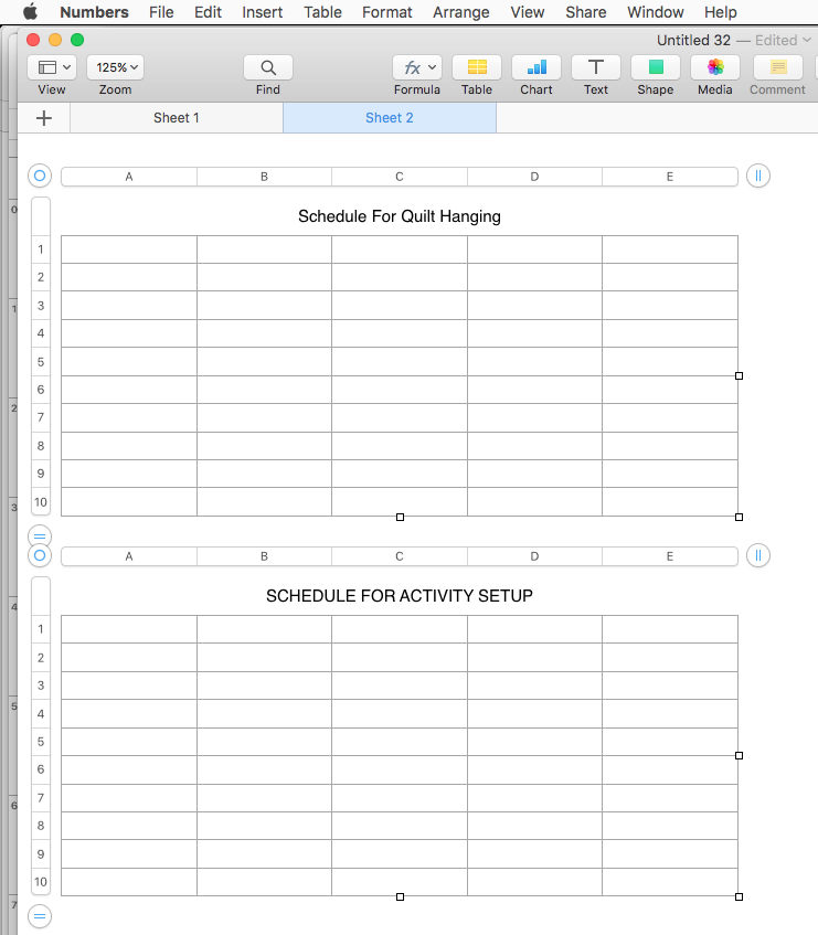 Numbers will not let me merge cells across to type in the subheader or title for those tasks.