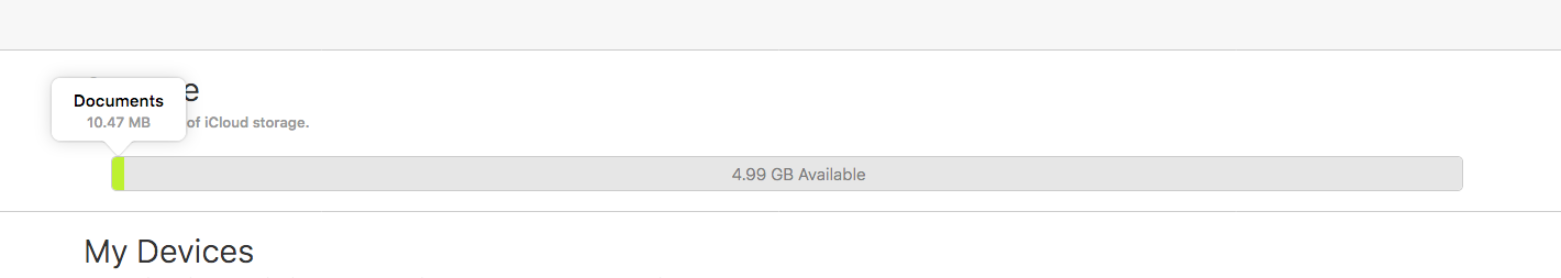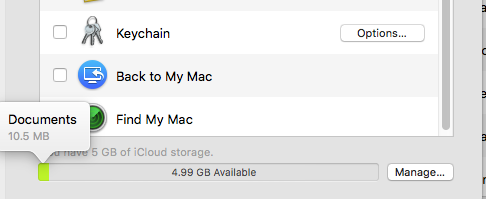When I click the manage button on the right I simply get this. Which does not tell me what the 10.5 mb of documents are.
