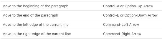 Wikipedia says the same thing, but also adds Control + A or Control + E as options, but they seem to move it to the begging or end of the paragraph or sentence rather than the line.