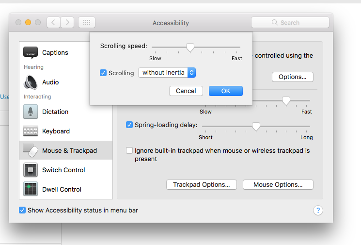 Not entirely sure this is what you are describing but I was myself disturbed by a "strange scroll" just after upgrade to Sierra.