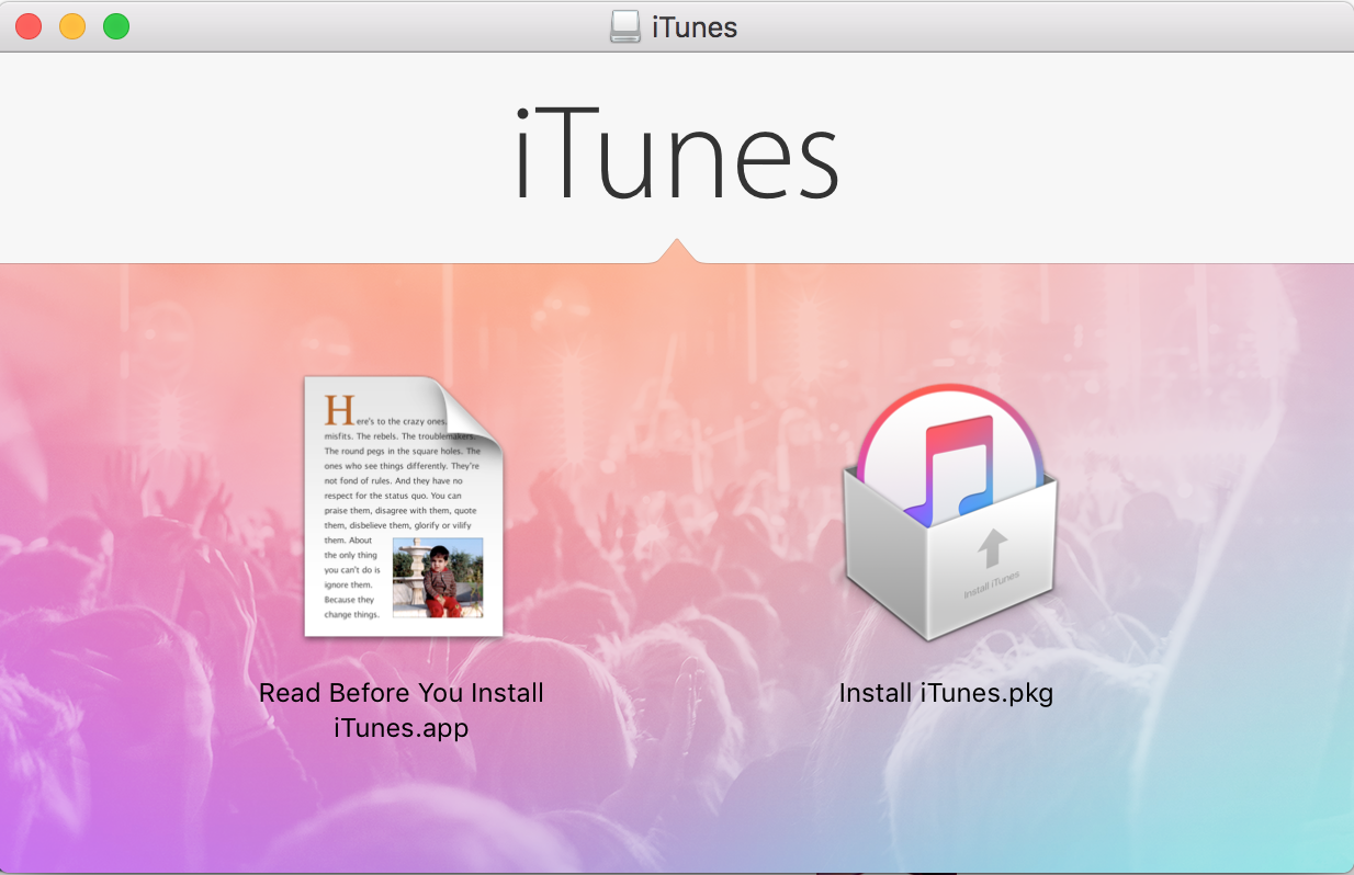 4 - Then install iTunes in the previously opened mounted volume, it should install correctly.