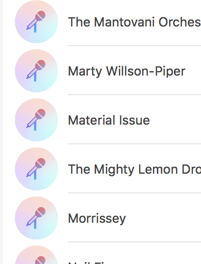 Actually, I've noticed that that isn't true. I purchased new music to test the rule that Apple purchased music gets the artwork. The new albums, which I both purchased and downloaded after this terrible, horrible, no good, very bad update, don't show the artist artwork and have the hideous microphone circle image. I didn't own anything from this artist before. Albums/artists I have never bought through Apple music sometimes have artist artwork instead of the microphone. There doesn't seem to be a discernible pattern that can explain why this is happening, at least to me.