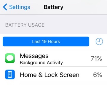 After I updated to iOS 10.0.1 on my iPhone 5S I noticed that more than 45% of the battery usage is for "Messages Background Activity". Is this some kind of a bug? Is there a temporary solution for this? [image attached]