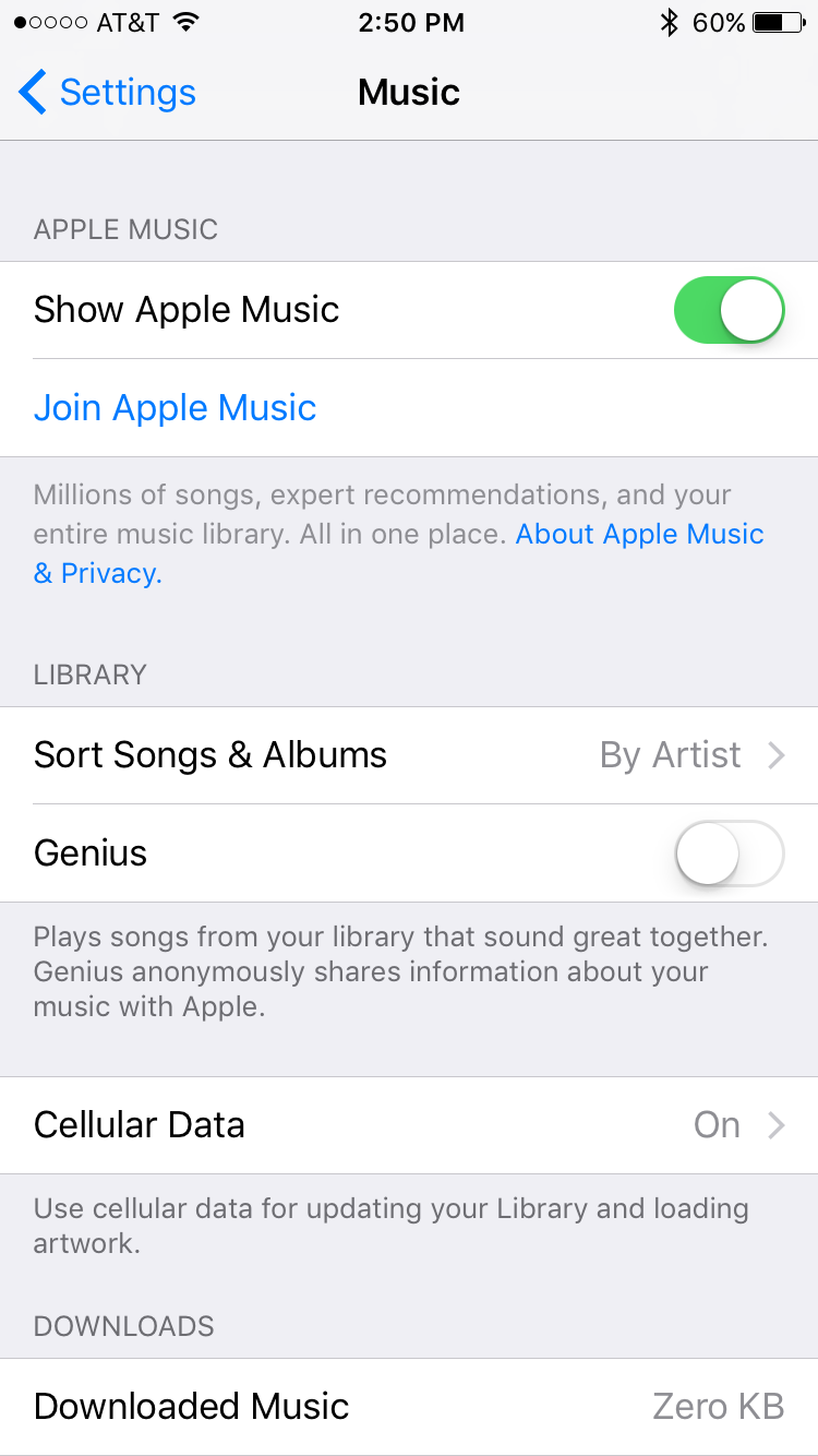 I don't like to keep music on my phone and after updating to iOS10 purchased music is now showing up on my phone (not downloaded but still automatically plays when connects to my car's bluetooth... streaming over my cellular data connecting I'm assuming). I've gone to settings > music > and looked to toggle off iCloud Music Library... no such setting. I've looked all around the music app for some setting to show downloaded music only but can't find any such setting. The only way it goes away is in settings > iTunes & app store > logging out... but then I'm not logged into the app store anymore. Does anyone know how I can get rid of all this cloud based music I don't want on my phone!??!