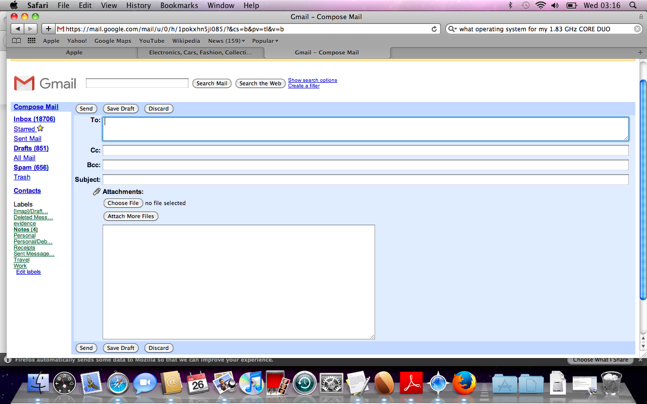MacBook, Mac OS X (10.6.8), Intel Core2 Duo, Proc. Sp. 2.26