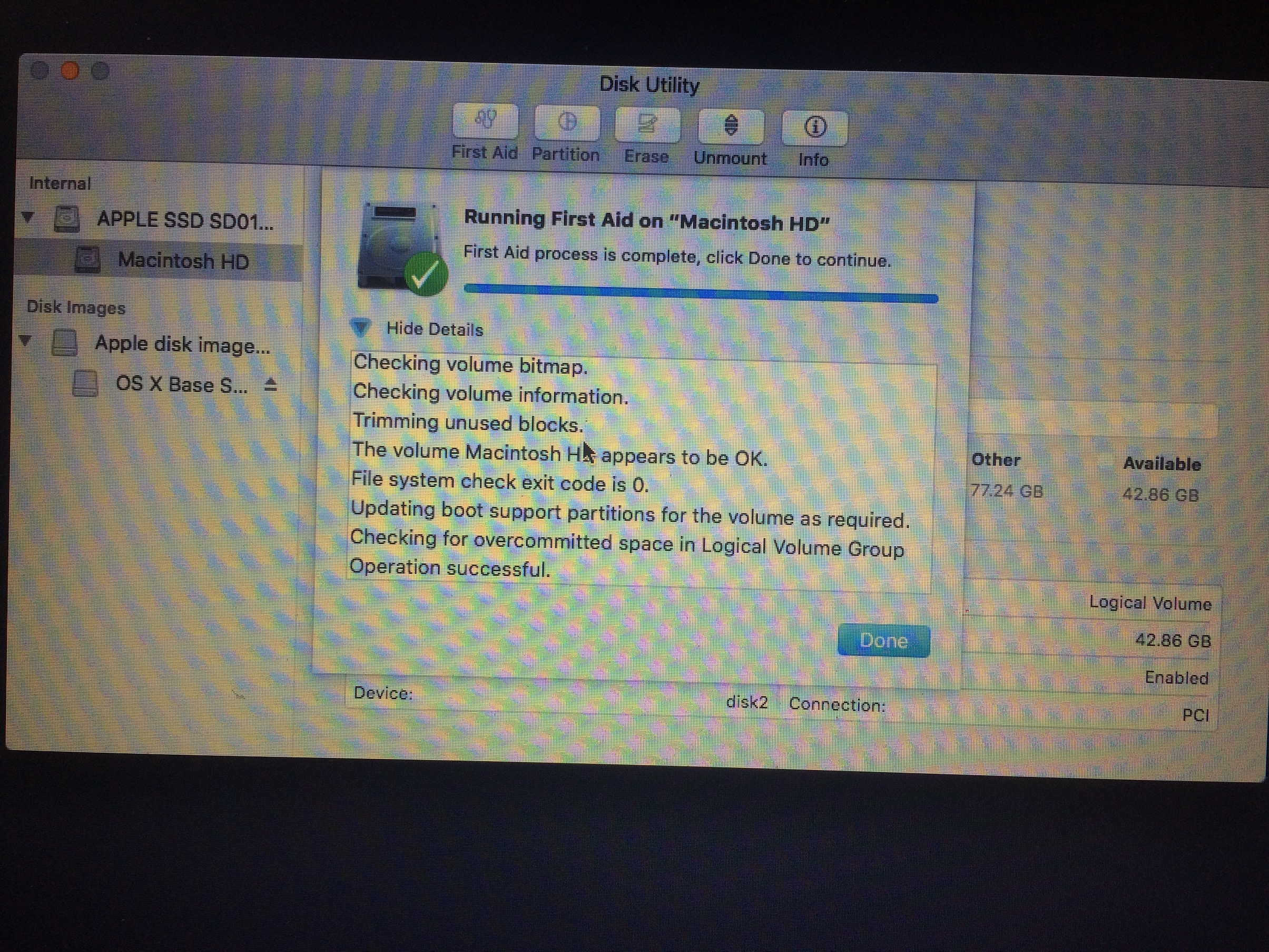 I then ran the Disk Utility in Recovery Mode, and could see that the SSD was OK, so I could not repair: