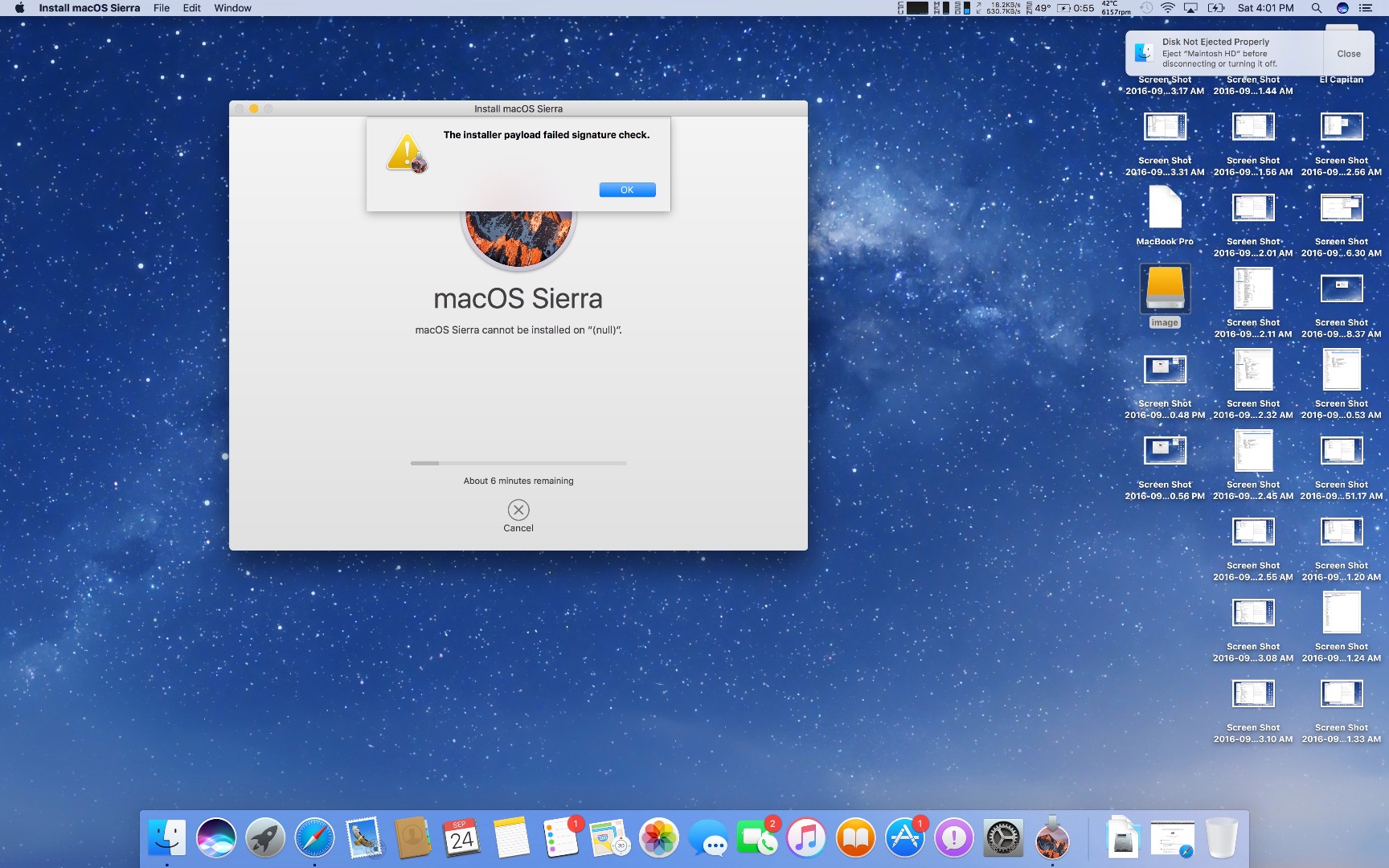 Installing macOS Sierra results in the error message "The installer payload failed signature check"