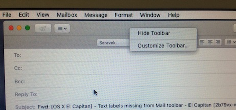 As per confirmation by ACTIONMARKER..."it appears that you have the option in the main viewer window and also a message window. But as soon as you open the Reply/Forward window, the option is gone. Same occurs in macOS Sierra."