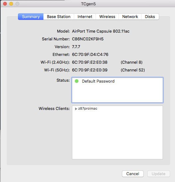 But when I open Airport Utiity, I can't find a BSSID to work out which one I am connected to (i have 5 base stations).