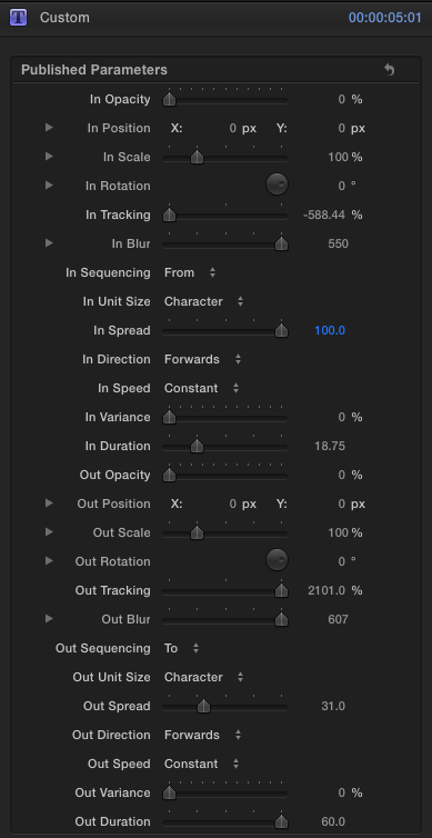2nd question: How could I expand the tracking of that text as an animated sequence? I've tried changing the tracking by degrees and adding keyframes, but that doesn't work. In other words, when the title, shown above appears, I'd like the tracking to then expand.