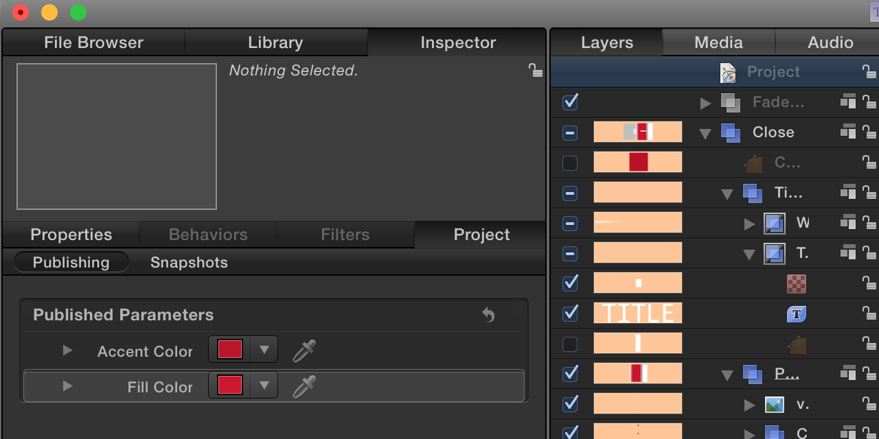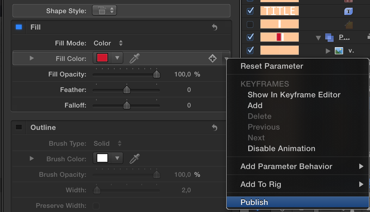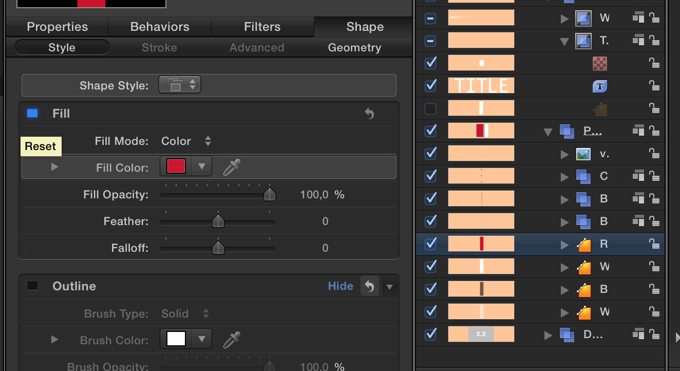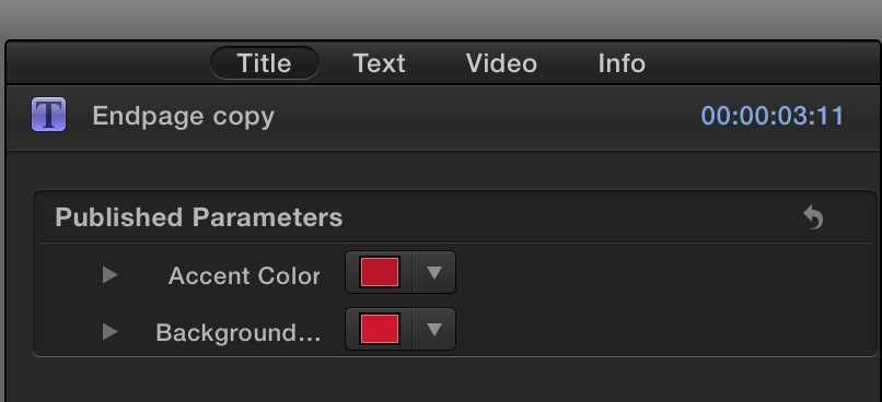 I'd like to know how I could change the color (red) behind the text title. Let's say I'd like the color to be blue, instead, or yellow or anything else. I've tried a number of ways (just getting used to FCP X). Is there a control for this, or would I have to make a mask with another color? Trouble is, the red is animated, and a traveling matte would be needed...sort of complicated as a procedure. Btw, how were these titles made? In another program, or can they be modified in this one?