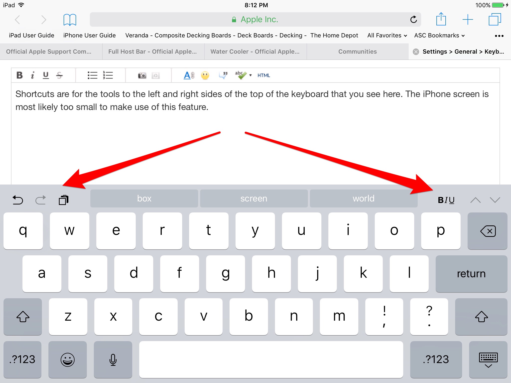 Since, on that same Settings page, both devices have a "Text Replacement" option which you can tap on to enter custom keyboard shortcuts, I have no idea what the "Shortcuts" toggle on iPad is for.