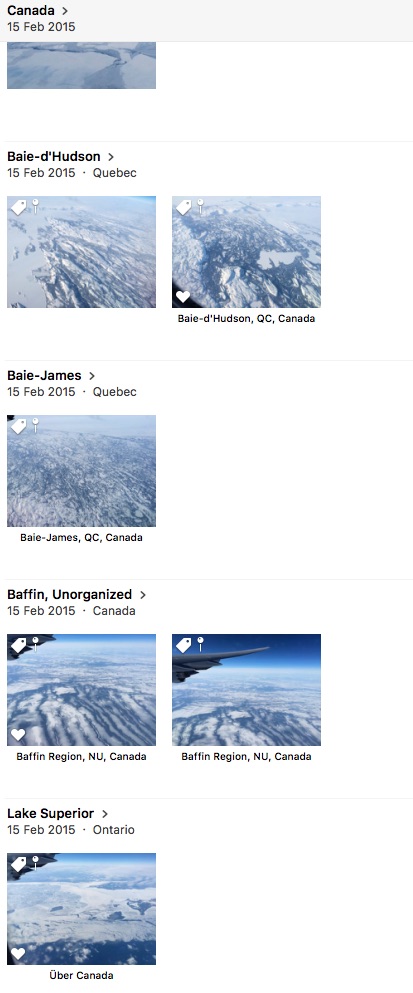 For example, on my flight to Mexico I took these photos from the plane. The temporal gap was not large, but the photos have been taken over different states of Canada and appear in separate moments: