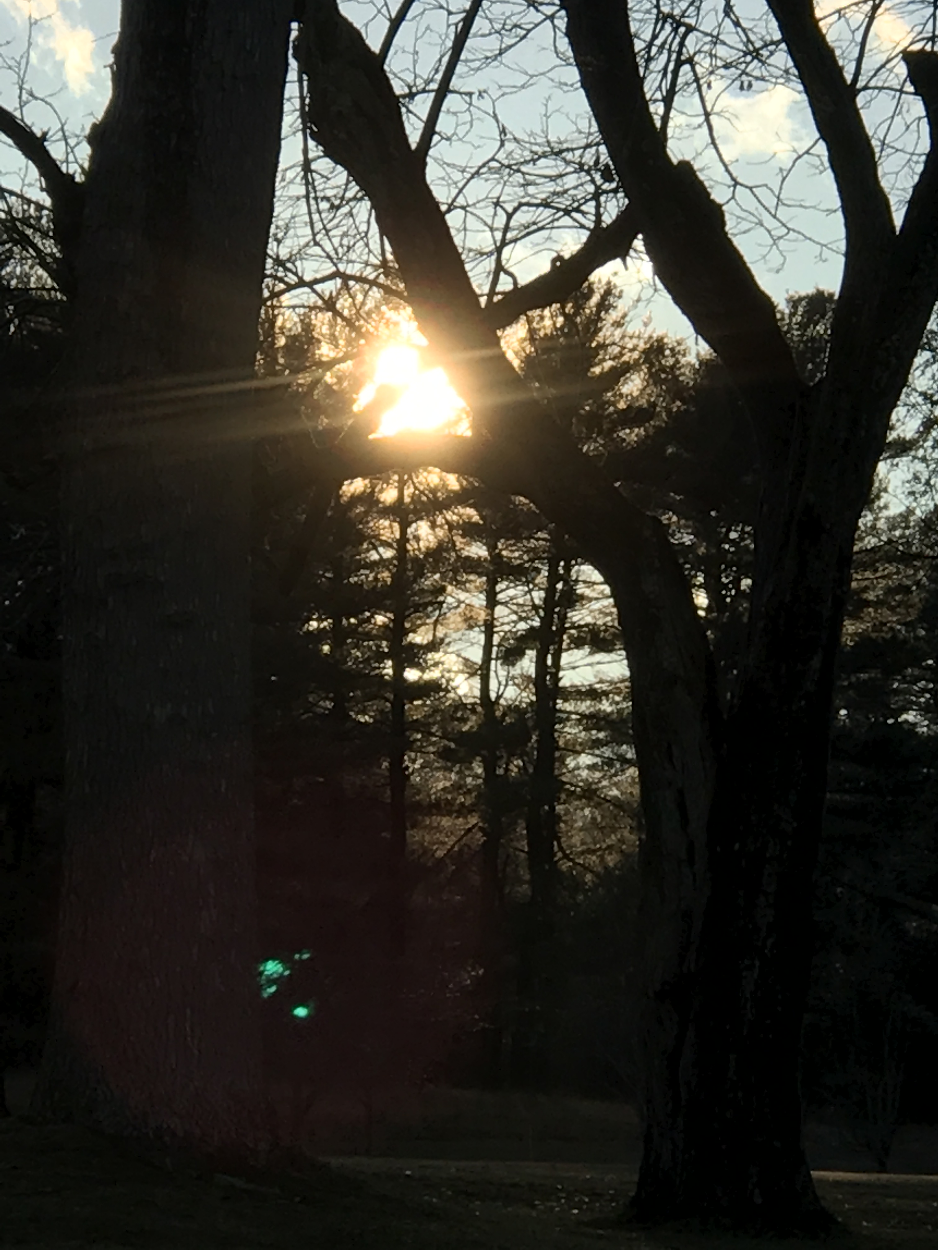 The dot you're seeing is a reflection off the lens, and is normal. I went back to my photos and have had some reflective dot since my 3GS, as well on my DSLR, and a Samsung point and shoot.