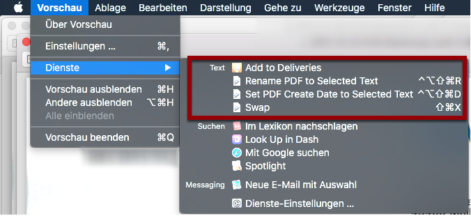 A título de exemplo, eu utilizo o Devonthink e o Excerptor. Como pode verificar na imagem deste link (https://raw.githubusercontent.com/guoc/excerptor/master/screenshots/excerpt_to_p asteboard.gif) [imagem relacionada com a ferramenta Excerptor], existem diversos serviços disponíveis no Preview relacionados com o Devonthink e o Excerptor. No meu caso, todos esses serviços estão activados nas Preferências do Sistema e não aparecem nas aplicações referidas (não faço referência ao Acrobat porque esta aplicação nunca funcionou com os "Serviços").