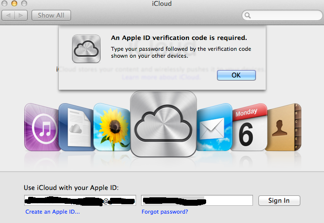 i then get the screen that says an apple id verification code is required. when that is texted to me there is no place to enter it on my mac! only my apple id and password. however if i try to log in straight from icloud.com, no problem. all i want to do is get rid of that pesky error message. i don't know what the problem is since i can still log into icloud itself from this mac. i don't really care about this mac having access to icloud except for the find my iphone feature. the only reason i use icloud at all is to back up my iphone.