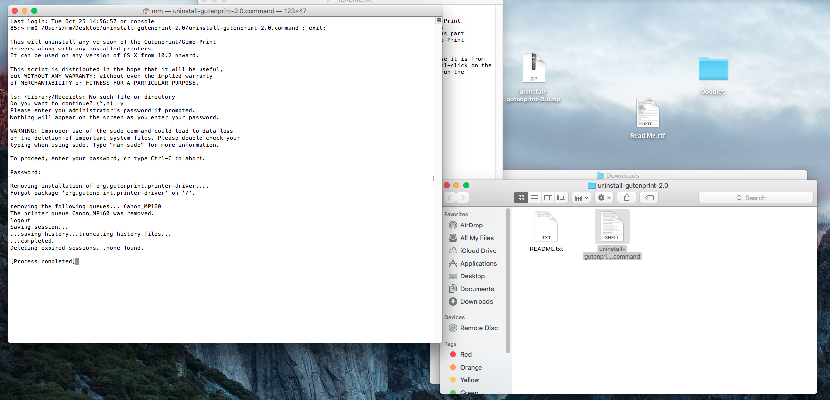 Hello! New in Mac, installing apps and trying to get old stuff to work. One printer works well, but other, Canon MP160 did not have drivers, so I installed Gutenprint. But that also did not help. I tried two times installing it and then removed Gutenprint as printer refused to do anything. What I need to know is, did it leave anything nasty or such behind? I heard Gutenprint is well known, but now I'm worried it was garbage.