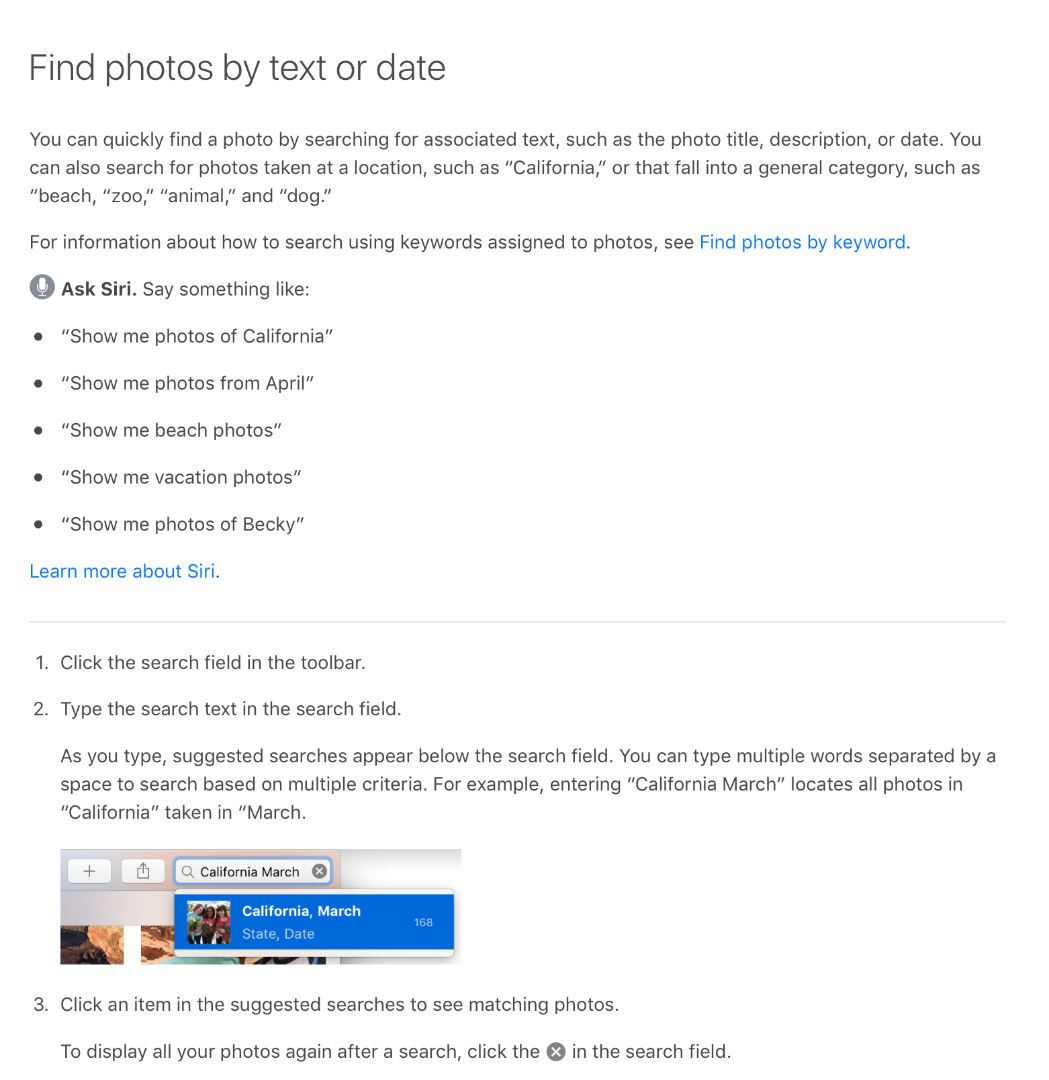 Apple points out that now you can search on natural language terms such as "pumpkin" and Photos will respond, quite outside of the system for searching on text present in photo titles, descriptions or keywords.